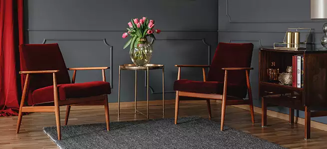 DRAMATIZE Don’t get us wrong – we’re big fans of classic white trim. It coordinates with everything and it’s all but guaranteed to never go out of style. However, there are times when architecture and décor call for something a little more – well, dramatic. The spacious living room seen here features huge windows and a high ceiling. By opting for a stately shade of gray, the trim frames and anchors the room’s architectural features in a way that simple white can’t. Repeating the gray throughout the room in baseboard molding, mantel, and crown molding keeps the striking window trim in check. Wood molding and trim can be used to similar effect.